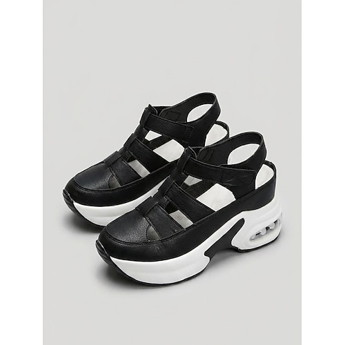 Sandali da donna bianchi con plateau – sandali sportivi leggeri con ammortizzazione ad aria e suola ammortizzante, scarpe comode per camminare, viaggiare e per il tempo libero all'aperto