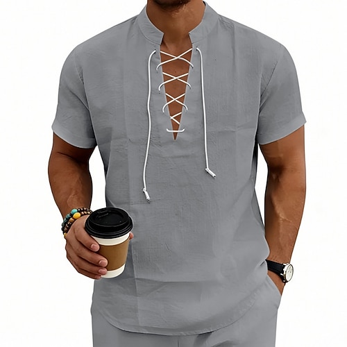 Per uomo Maglietta Maglia Henley Camicia a Maniche Lunghe Manica Corta Colletto Mao Estate Primavera Semplice Vintage Moda Streetwear Coulisse Quotidiano Vacanza Sport Outdoor Grigio scuro Nero