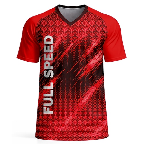 Herren Geometrisch Abstrakt Buchstaben Zahlen Fußball-Sommer Global Match Laufshirt Sommer Kurzarm UPF 50 Schnelltrocknend Atmungsaktiv Fitnessstudio Track Fitness Schwarz / rot Sportbekleidung