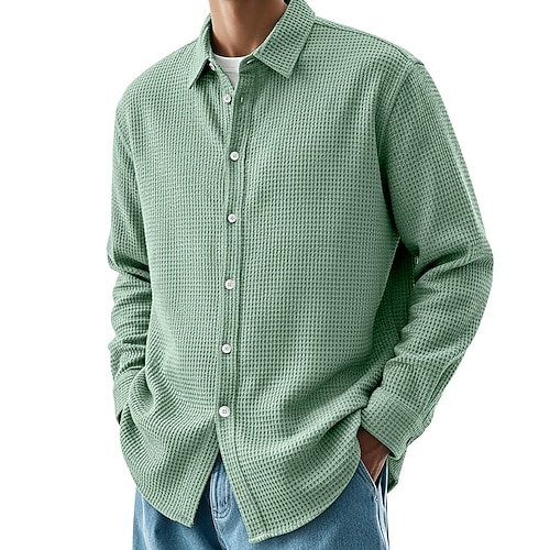 Per uomo Camicia Camicia a nido d'ape Camicia casual Camicia con Bottoni Nero Bianco Vino Blu marino Marrone Manica Lunga Semplice Bavero Casuale Quotidiano Abbigliamento Moda Streetwear
