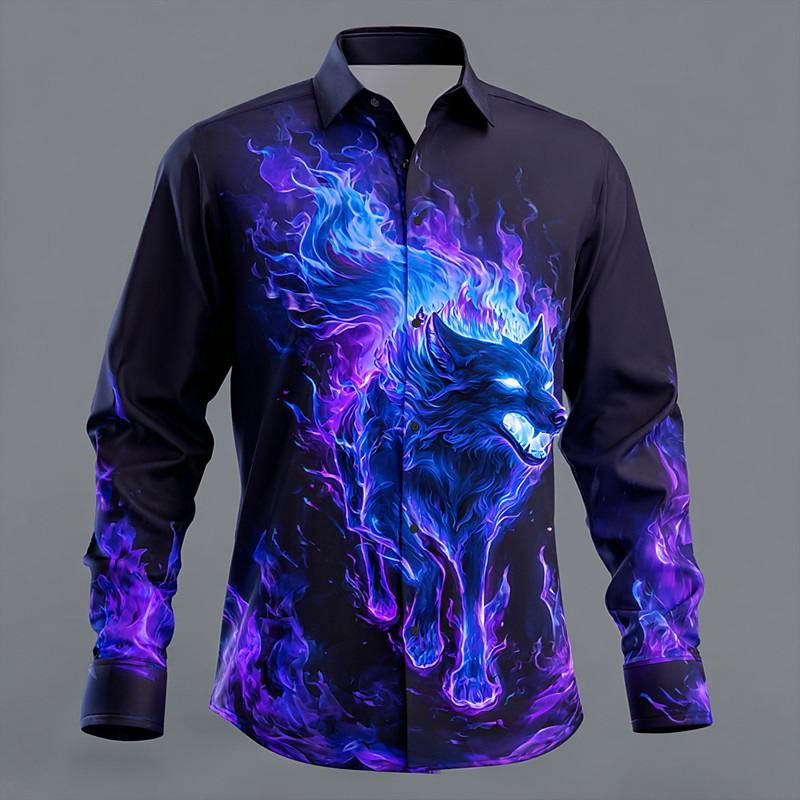 Men's Animal Tiger Lightning Shirt Button Up Shirt Long Sleeve Dark Outdoor Holiday Summer Spring Turndown 3D Print Collared Shirts Blue Purple Green
