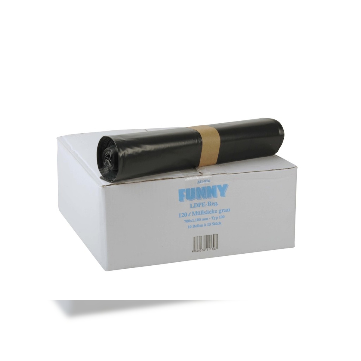 Plock GmbH Müllbeutel Funny - 300 Abfallbeutel - grau - ca. 120 L - Müllsäcke Typ 100