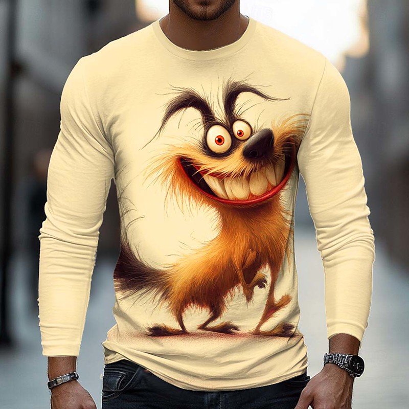 Men's Animal Dog Funny T Shirt Long Sleeve T shirt 3D Print Crew Neck Shirt Fashion Basic Street Casual Daily Blue Black White Summer Spring Clothing Apparel S M L XL XXL XXXL