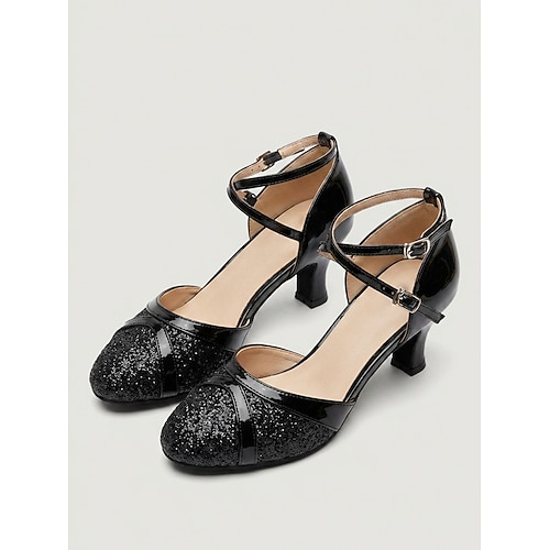 Blaue Damen-Balletttanzschuhe – Glitzer, geschlossene Zehenpartie, Latein Standard-Tanzschuhe mit Knöchelriemen