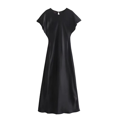 Per donna Abito Midi Abito in Raso Abito nero Elegante Vintage Moda Quotidiano All'aperto Ufficio Vestibilità comoda Semplice Senza Maniche Scollo a V Nero Cammello Albicocca Estate Primavera