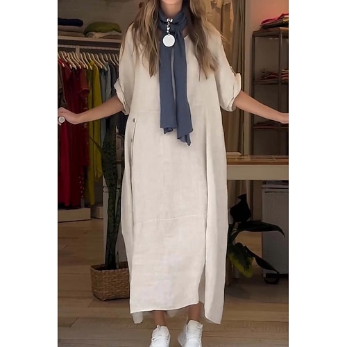 Per donna Abito maxi Abito Camicia Abiti in cotone e lino Vestito Casual Abito in cotone Essenziale Classico Casual Quotidiano All'aperto Vacanza Vestibilità comoda Semplice Manica Lunga Colletto a