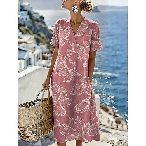 Per donna Abito Midi Vestito Estivo Vestito Casual Vacanza Casual Spiaggia Spiaggia Feste Vestibilità comoda Floreale Grafico Manica Corta Scollo a V Rosa chiaro Rosa Viola Verde Estate Primavera