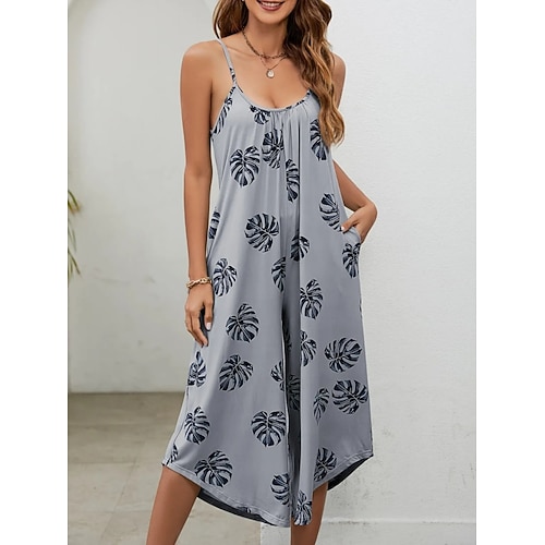 Per donna Tuta Attivo Floreale Senza Maniche Scollo a V Stampato Quotidiano Vacanza Vestibilità comoda Verde Grigio Estate