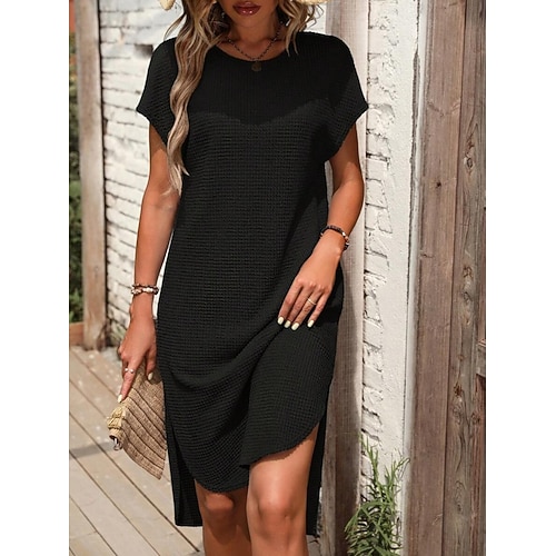 Per donna Abito Midi Vestito T-Shirt Abito Estivo Casual Quotidiano Vestibilità comoda Semplice Manica Corta Girocollo Blu Nero Verde militare Albicocca Estate