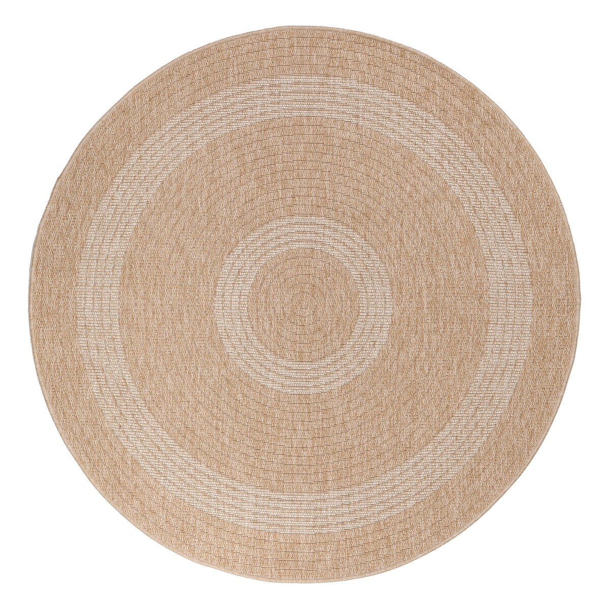 Carpetsale24 Runder In & Outdoor Teppich Wetterfest Sisal Optik Beige 80 cm Rund - Küchenteppich Flachgewebe Natur Optik Vintage für Balkon Terrasse