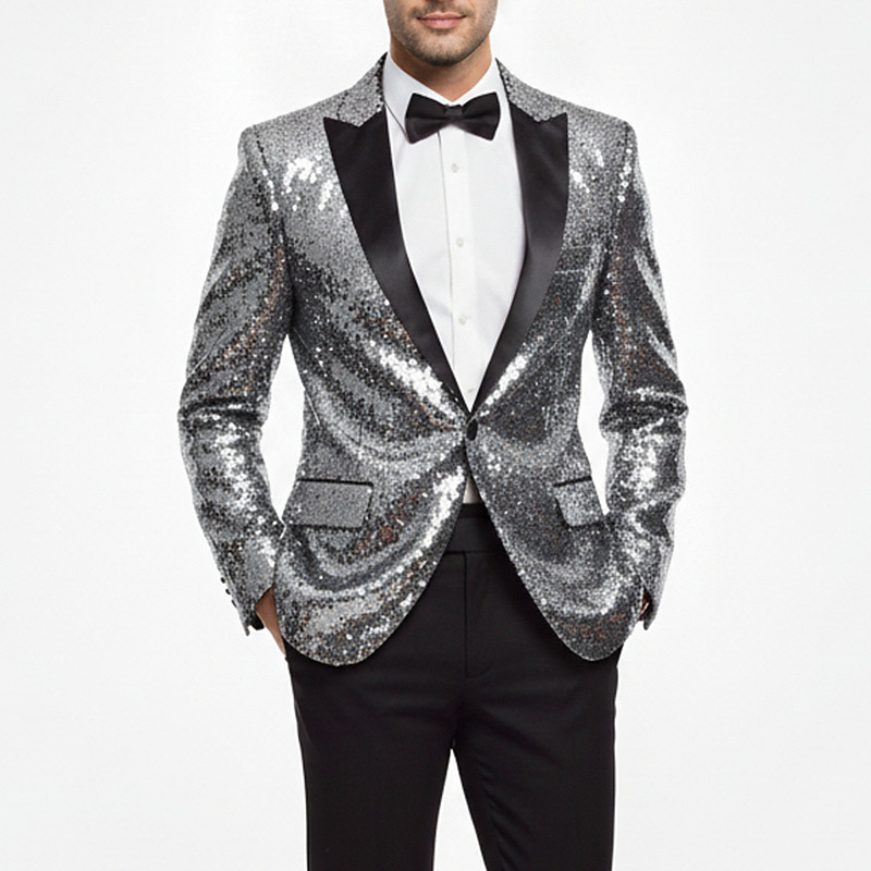 Men's Blazer Jacket Closure collar Party Solid Colored Blazer Black Silver Champagne Tailored Fit Single Breasted One-button