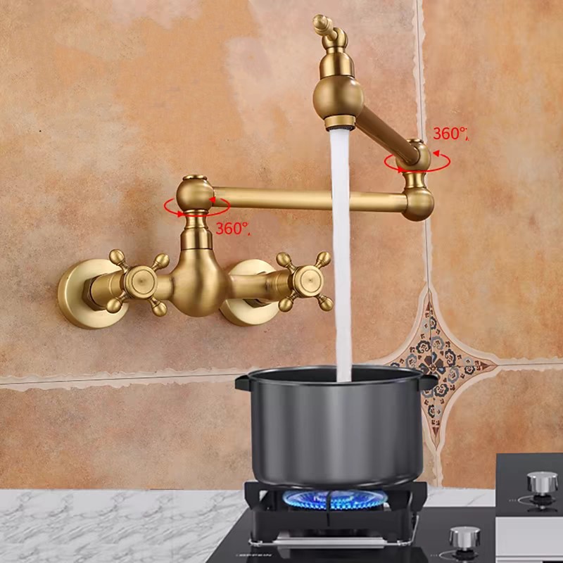 Wall Mounted Kitchen Faucet,Brass Single Handle One Hole Widespread Foldable and Rotatable Painted Finishes Pot Filler Contemporary Kitchen Taps with Hot and Cold Water