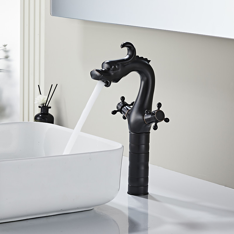 Antique ORB Black Bathroom Sink Faucet,FaucetSet Centerset Single Handle One Hole Bath Taps with Hot and Cold Switch