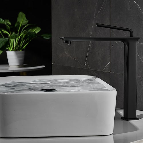Waschbecken-Mischbatterie Messing, hoch/kurz Badarmatur Einhand-Einloch-Deck montiert mit Kalt-Warm-Schlauch-Badarmaturen Gefäß-Wasserhahn
