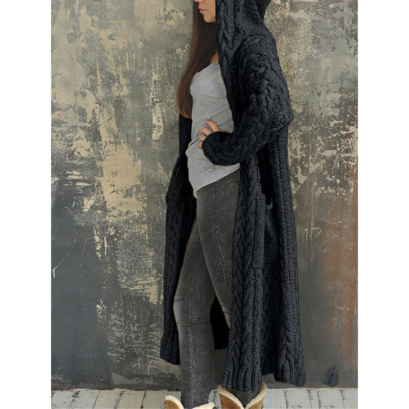 Women's Cardigan Sweater Stylish Casual Soft Solid Color Cable Hooded Pocket Hooded Long Sleeve Long Tops Knit Outdoor Daily Going out Black Yellow Fall Winter