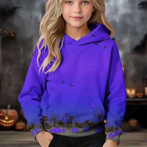 Halloween Mädchen 3D Kürbis Kapuzensweatshirt Langarm Herbst Winter Mode Niedlich Basic Kinder 4-12 Jahre Mit Kapuze Outdoor Lässig Täglich Normale Passform