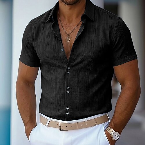Per uomo Testurizzato Maglia da golf Affari Attivo Classico Manica Corta Moda Moderno Tinta unica Bottoni Estate Primavera Vestibilità regolare Nero Bianco Blu reale Beige Grigio Testurizzato