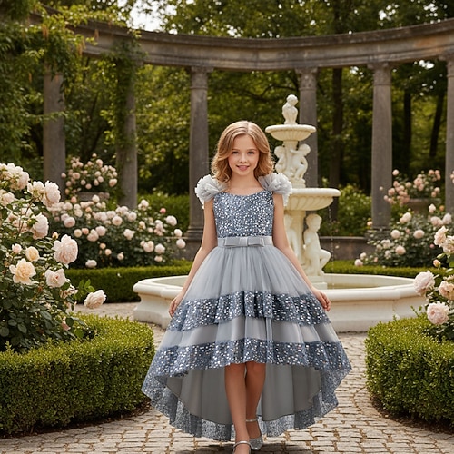 Abito da damigella d'onore bambina Ragazze Abito formale Abiti da sposa Feste Matrimonio Formale Moda Principessa Paillettes Patchwork Tinta unica Senza Maniche Girocollo Grigio Nero Dai 4 anni in su