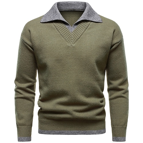 Herren Pullover Gerippt Stricken Normale Oberteile Patchwork 2 in 1 Einfach Umlegekragen Strickware Zeitgenössisch Geschäft Lässig Bekleidung Herbst Winter Schwarz Rote M L XL