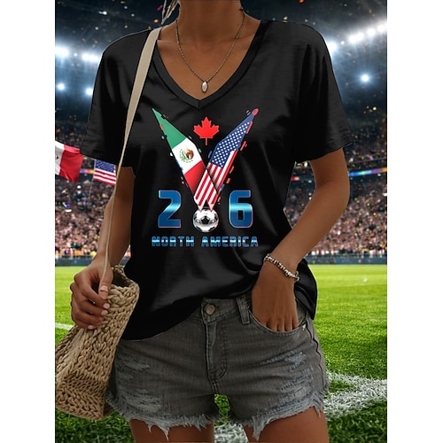 Per donna Maglietta Stampato Grafico Squadra di calcio Elegante Classico Casual Manica Corta Scollo a V Top Regolari Quotidiano Blu Nero Bianco Verde Estate Primavera