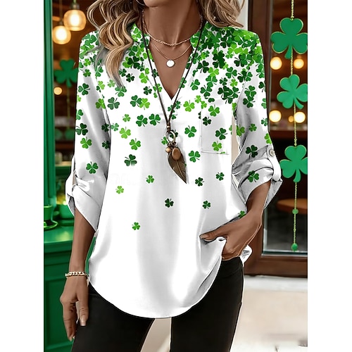 Giorno di San Patrizio Festa di San Patrizio Per donna Maglietta Foglia Festa di San Patrizio Manica Corta Scollo a V Top Regolari Quotidiano Weekend Stampato Nero