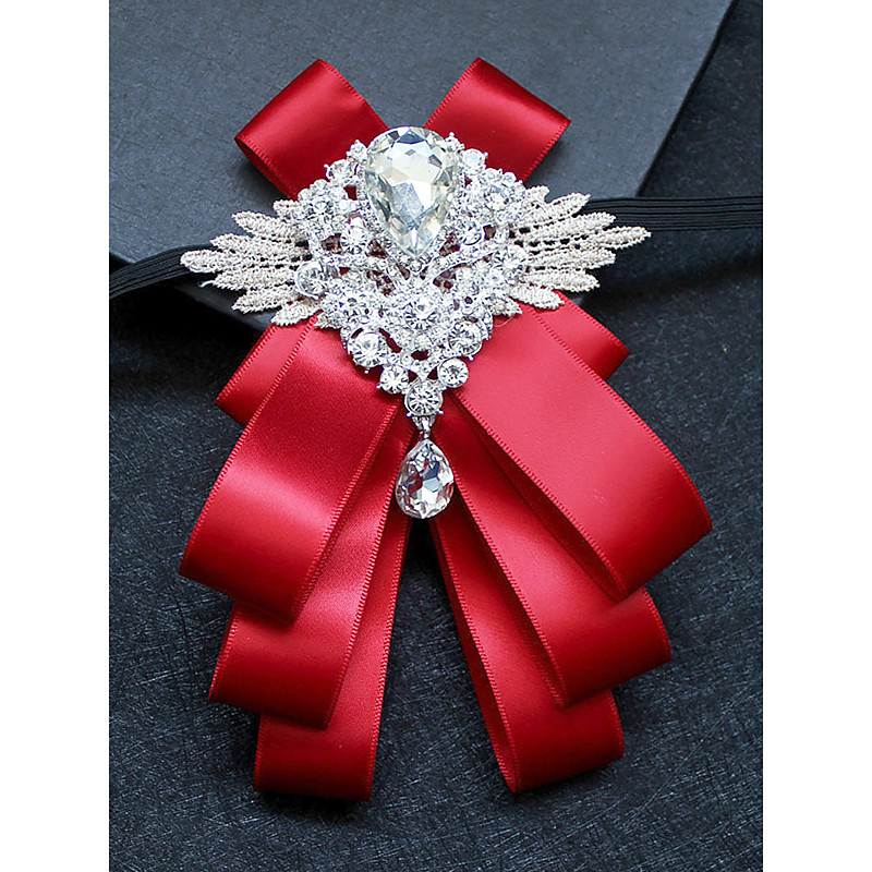 Men's Luxury Crystal Brooch Bow Tie - Elegant Ribbon Pin with Rhinestone Decoration, Formal Wedding and Party Accessories