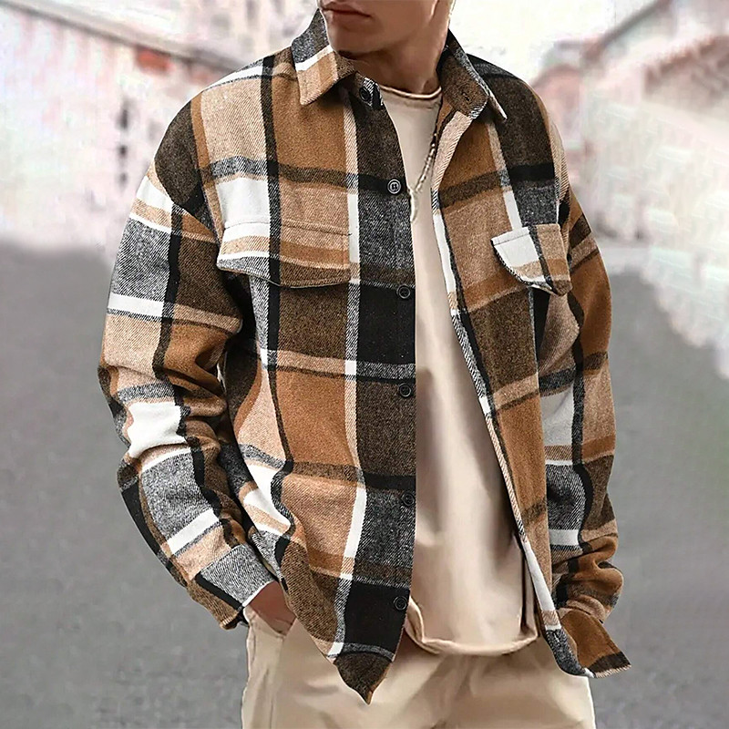 Men's Shirt Flannel Shirt Overshirt Plaid Outdoor Street Black Red Brown Long Sleeve Winter Spring Fall Clothing Apparel