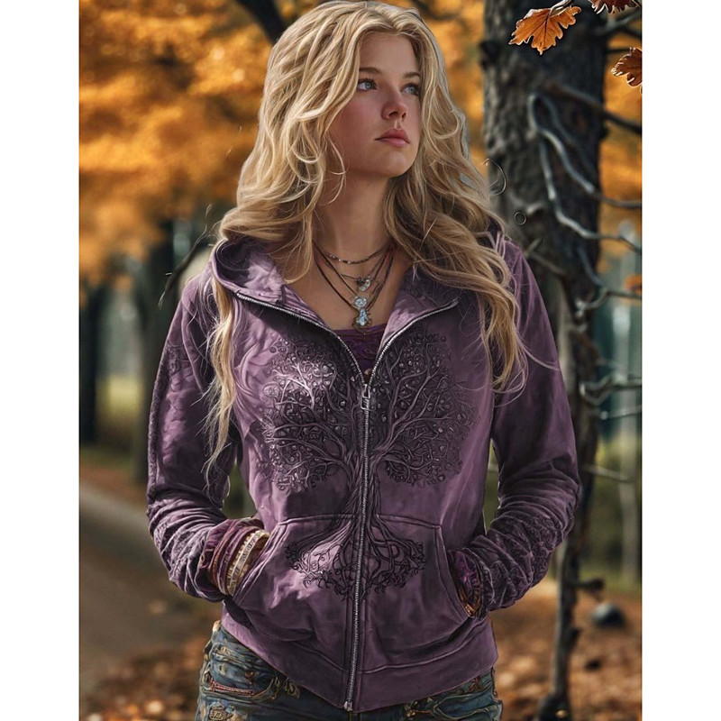 Women's Zip Up Hoodies Graphic Plaid Fashion Western Casual Long Sleeve Hooded Regular Tops Street Dailywear Casual Zipper Pocket Print Blue Purple Brown Green Spring Fall Winter