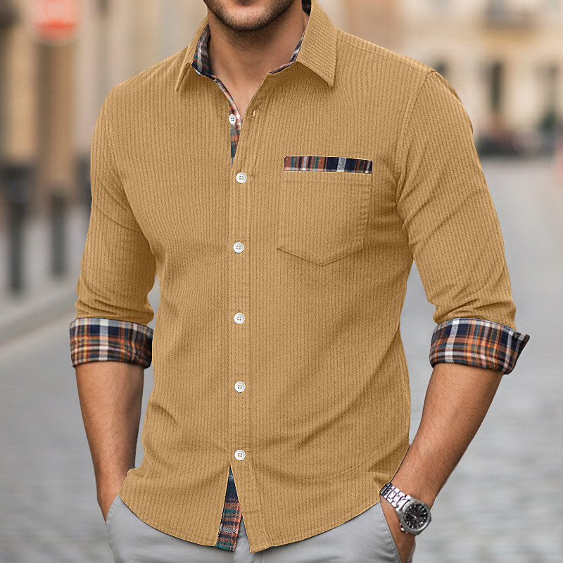 Men's Shirt Casual Shirt Corduroy Shirt Button Up Shirt Black Navy Blue Brown Green khaki Long Sleeve Plaid Collar Casual Daily Patchwork Clothing Apparel Fashion Modern Casual