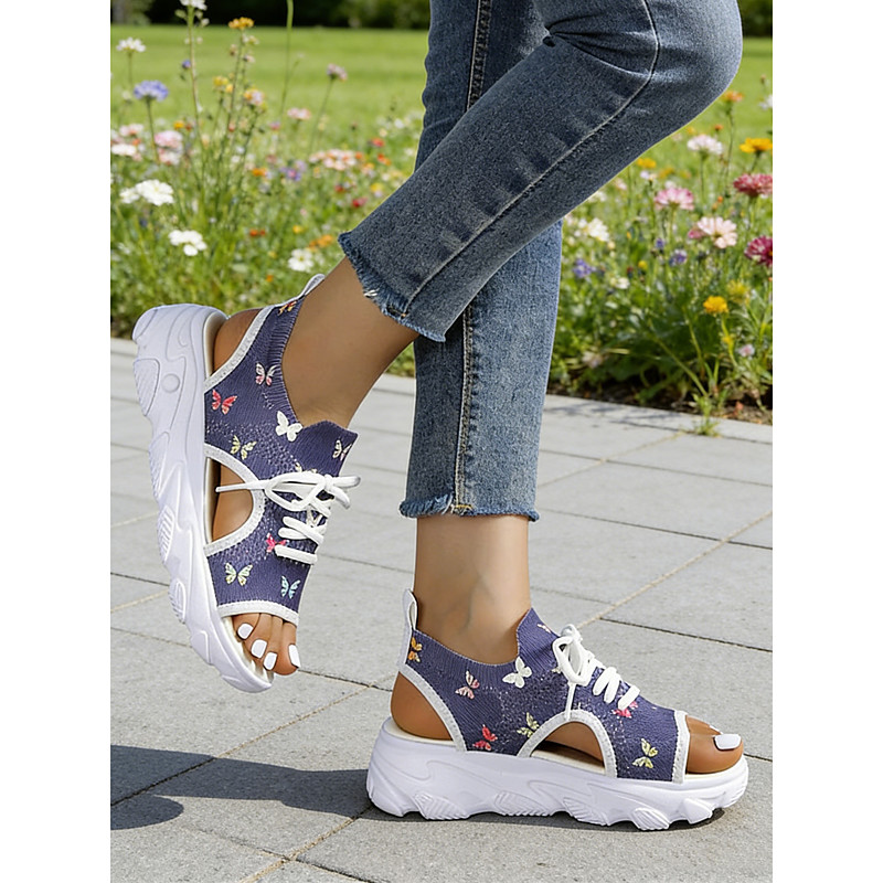 Women's Colorful Floral Print Platform Sandals - Lace-Up Open-Toe Sneaker Sandals for Summer Outings, Walking and Casual Vacation