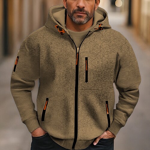 Per uomo Felpa con cappuccio Felpa con cappuccio e zip corta Nero Verde militare Blu Reale Marrone Con Cappuccio Ogni Coulisse Tasca Sport Outdoor Quotidiano Ferie Streetwear Essenziale Casual