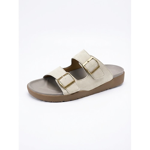 Sandali da uomo beige con doppia fibbia, a punta aperta, casual, estivi, leggeri e comodi, ideali per la spiaggia, il resort, la piscina, i viaggi, il tempo libero ai tropici e l'uso quotidiano nelle giornate calde.