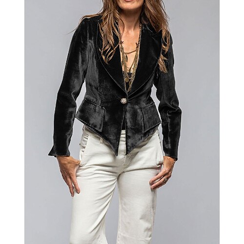 Per donna Blazer Blazer di velluto Confortevole Tasca Moda Semplice Feste Festa / Sera Casuale Corto Regolare Collo ripiegato Vestibilità regolare Manica Lunga Capispalla blu navy Nero Vino Primavera