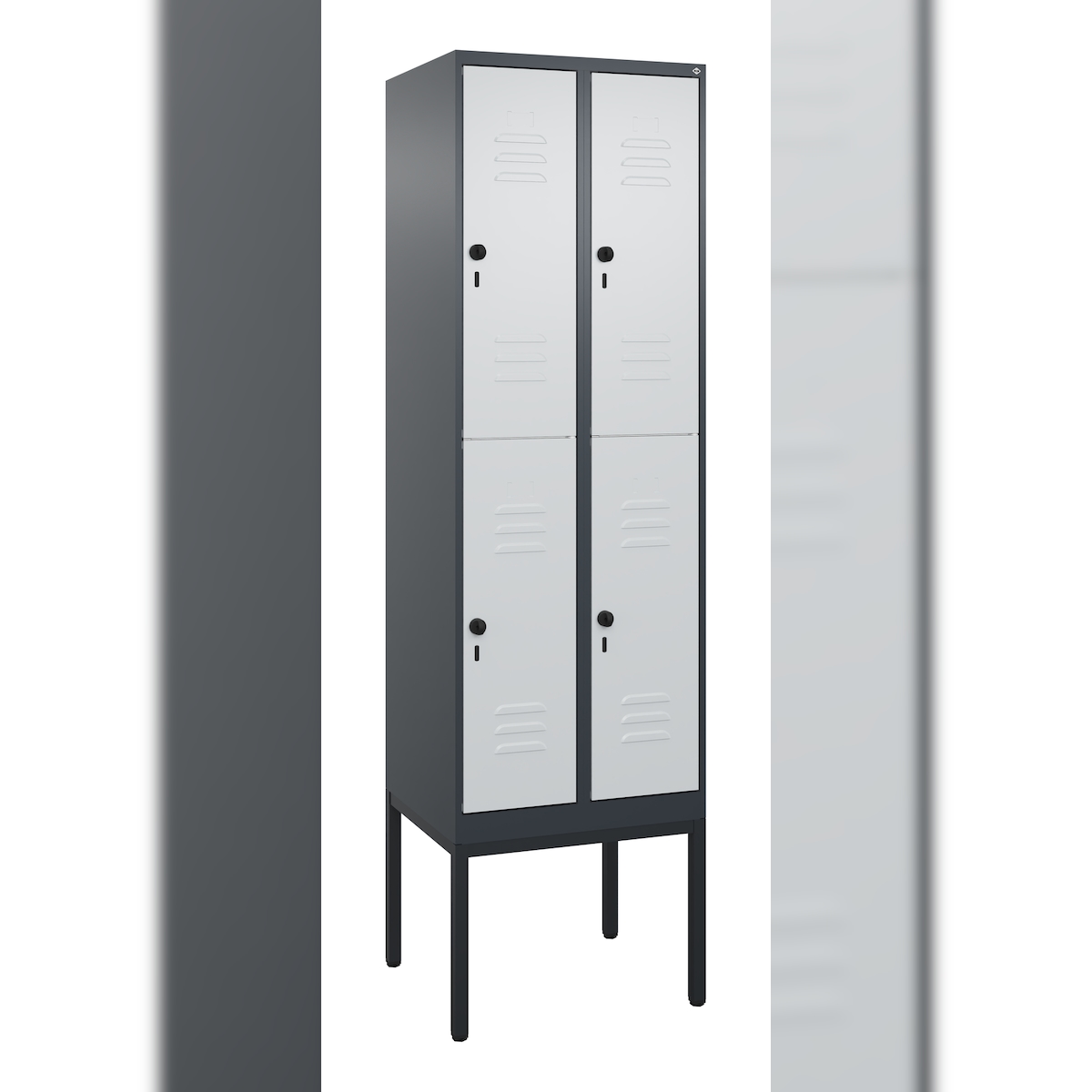C+P Spind Classic PLUS, Füßen, 2 Abteile, HxBxT 195x80x50cm, Zylinderschloss, Hellgrau/Fernblau von PROREGAL