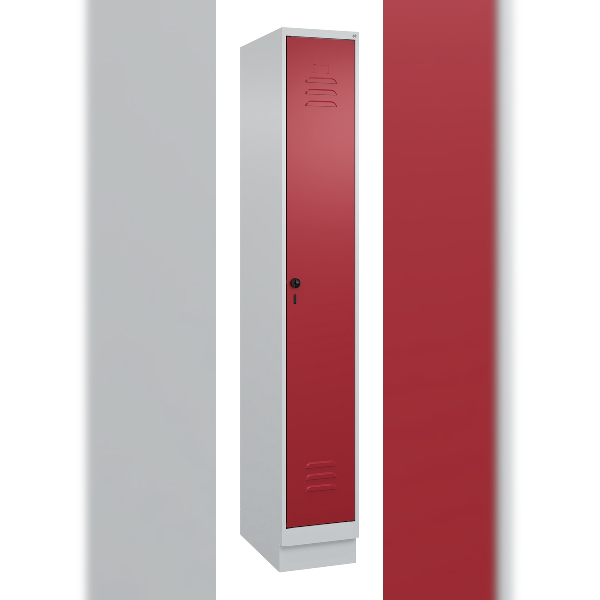 C+P Spind Classic PLUS, Sockel, 1 Abteil, HxBxT 195x30x50cm, Sicherheitsdrehriegel, Hellgrau/Rubinrot von PROREGAL