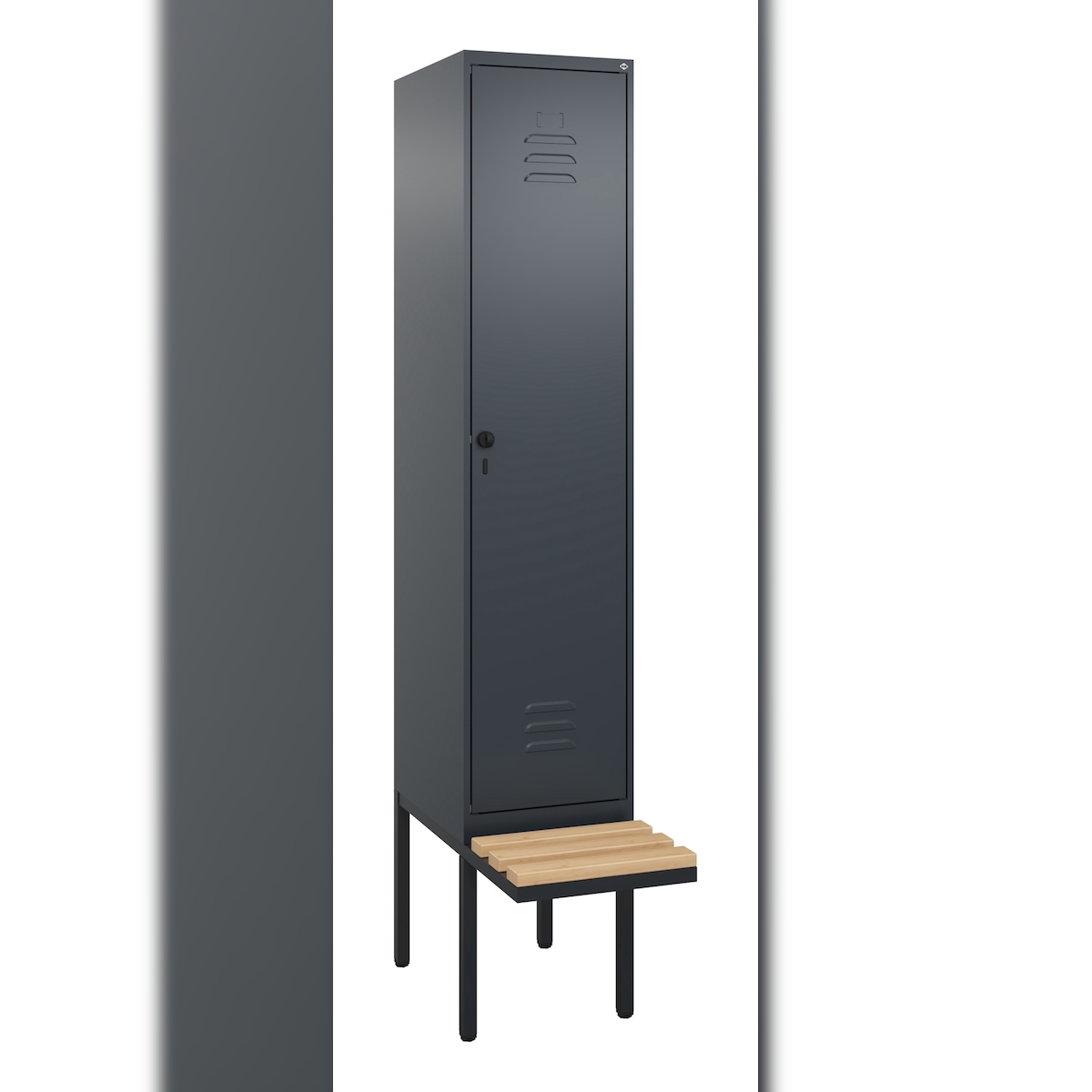 C+P Spind Classic PLUS, schwebender Sitzbank aus Buche 1 Abteil, HxBxT 212x40x82cm, Sicherheitsdrehriegel, Anthrazit von PROREGAL