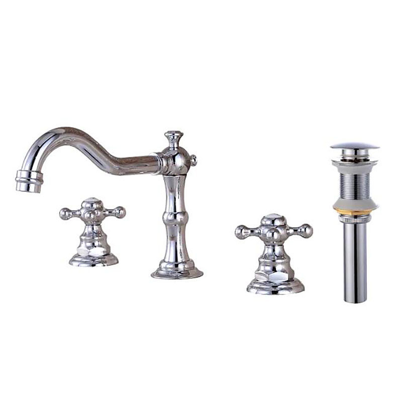 Widespread Bathroom Sink Faucet,Two Handle Three Holes, Brass ORB Bathroom Sink Faucet Contain with Supply Lines and Drain Plug and Hot/Cold Switch