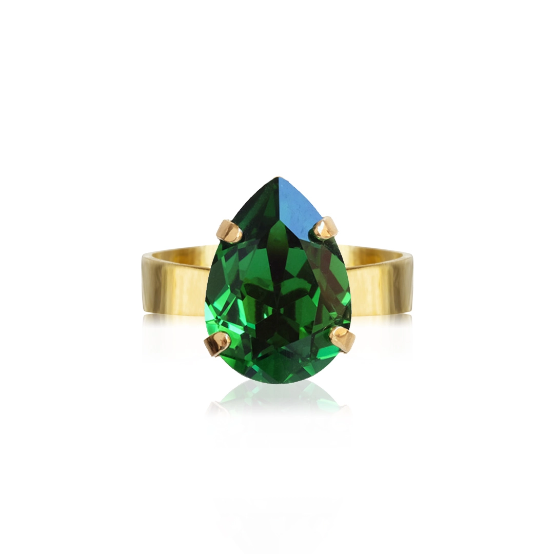 Caroline Svedbom - Mini Drop Ring Gold Dark Moss Green