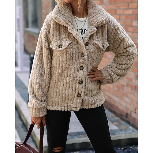 Per donna Cappotto Invernale Cappotto Teddy Caldo Confortevole Tasca Bottoni Moda Casual Tinta unica Vacanza Streetwear Casuale Abbigliamento quotidiano Regolare Lungo Collo ripiegato Vestibilit