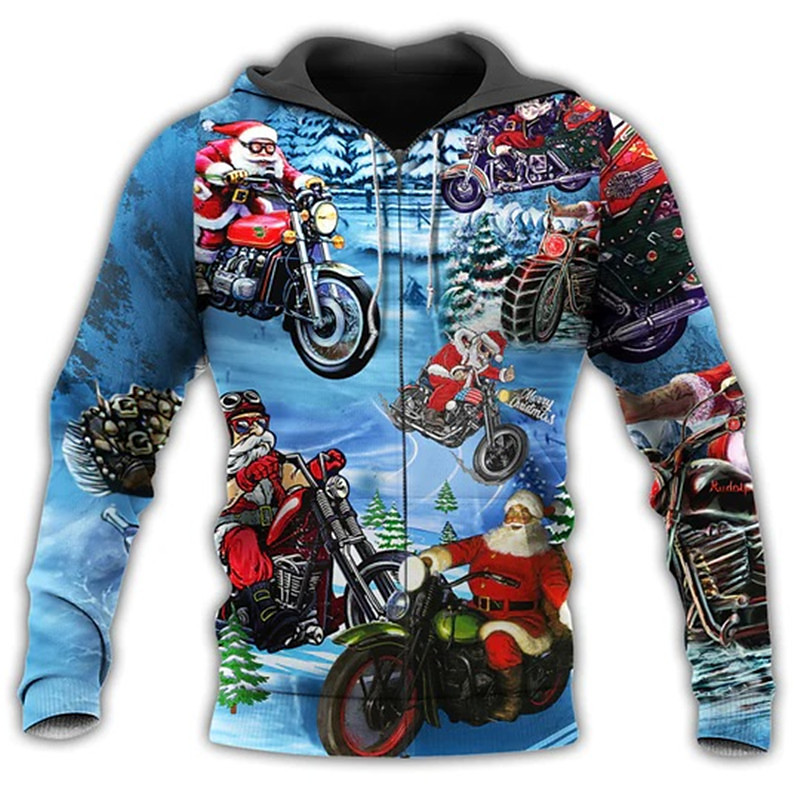 Christmas Men's Santa Claus 3D Hoodies Full Zip Jacket Yellow Blue Green Hooded Santa Claus Graphic Prints Ugly Zipper Print Sports Outdoor Daily Sports 3D
