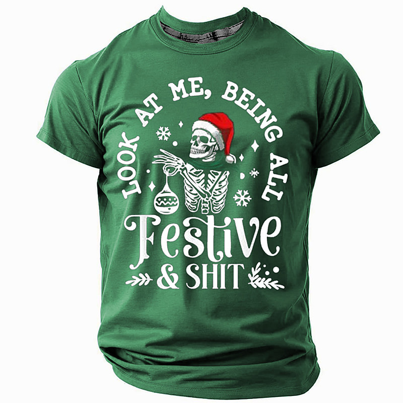 Christmas Men's Funny Christmas 3D T-shirts Cool Skulls Hat Casual Street Style 3D Print Tee Sports Outdoor Holiday Red Blue Green Short Sleeve Crew Neck Spring Summer Clothing Apparel