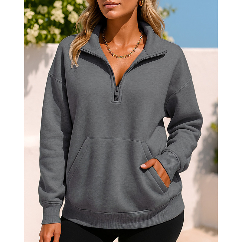 Women's Pullover Sweatshirt Casual Tops Quarter Zipper Long Sleeve Top Athleisure Solid Colored Outdoor Travel Sports Sportswear Activewear Black Dark Gray Fuchsia