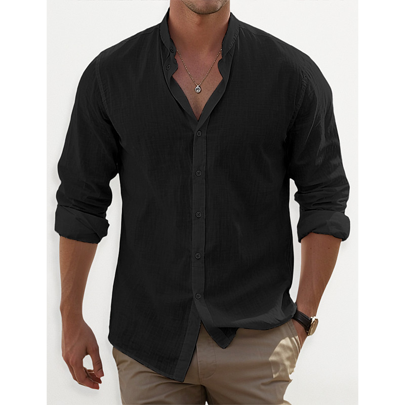 Men's Shirt Band Collar Shirt Summer Shirt Beach Wear Button Up Shirt Plain Casual Daily Black White Pink Blue Long Sleeve Band Collar Spring Summer Clothing Apparel