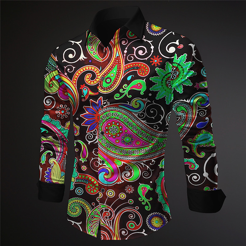 Men's Paisley Shirt Button Up Shirt Long Sleeve Vintage Artistic Daily Wear Going out Fall Winter Turndown Print Button-Down Purple Green