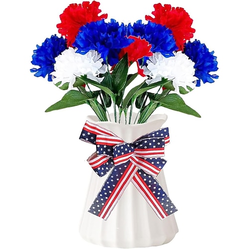 Set di 2/4 decorazioni per il 4 luglio: bouquet di garofani di seta da 14 pezzi, rossi, bianchi e blu, ideale per feste del giorno dell'indipendenza e decorazioni per la tavola a tema patriottico...