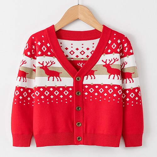 Bambini Unisex Natale Maglione di Natale Cervo Manica Lunga Scollo a V Regali di Natale Moda Rosso Autunno Vestiti Dai 4 anni in su
