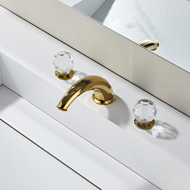Widespread Bathroom Sink Faucet,Two Handle Three Holes Waterfall Electroplated Bath Taps