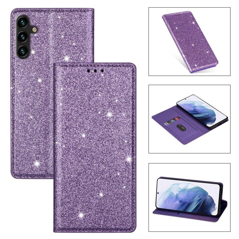 Mobilskal till Samsung Galaxy S26 Glittrig PU Läder + TPU Kortfack - Lila