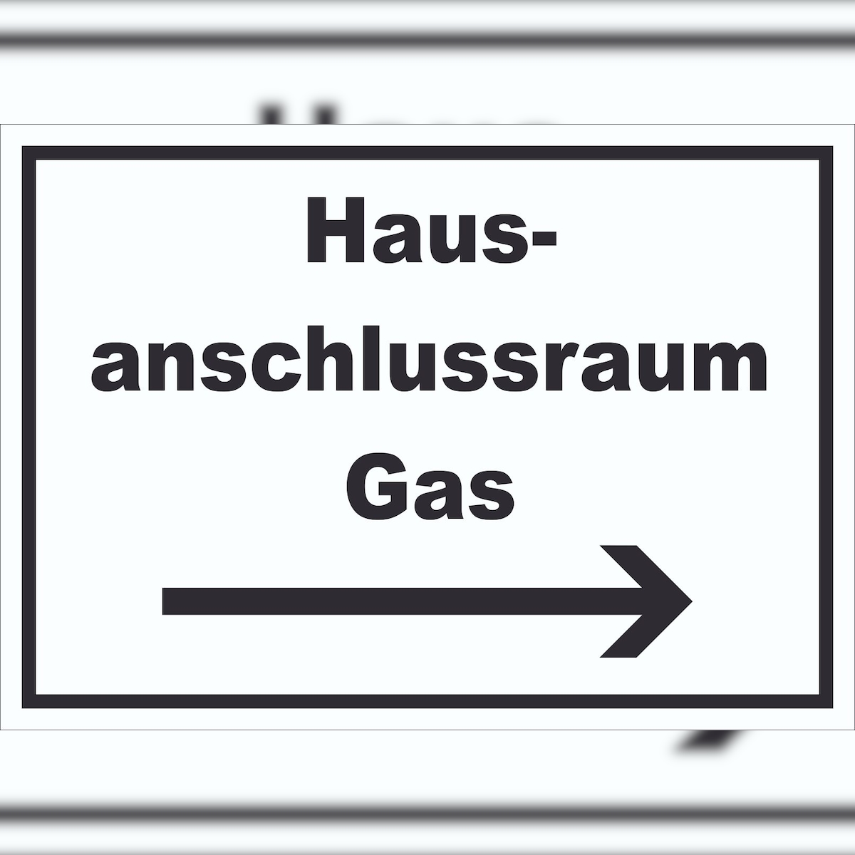 HB-Druck Hausanschlussraum Gas Schild mit Text und Richtungspfeil rechts HAR waagerecht A0 (841x1189mm)