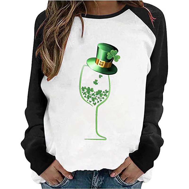St. Paddy's Day St. Patrick's Day Women's T Shirt Leaf St. Patrick's Day Long Sleeve Round Neck Regular Tops Holiday Weekend Print Grass Green White Light Green Army Green Green